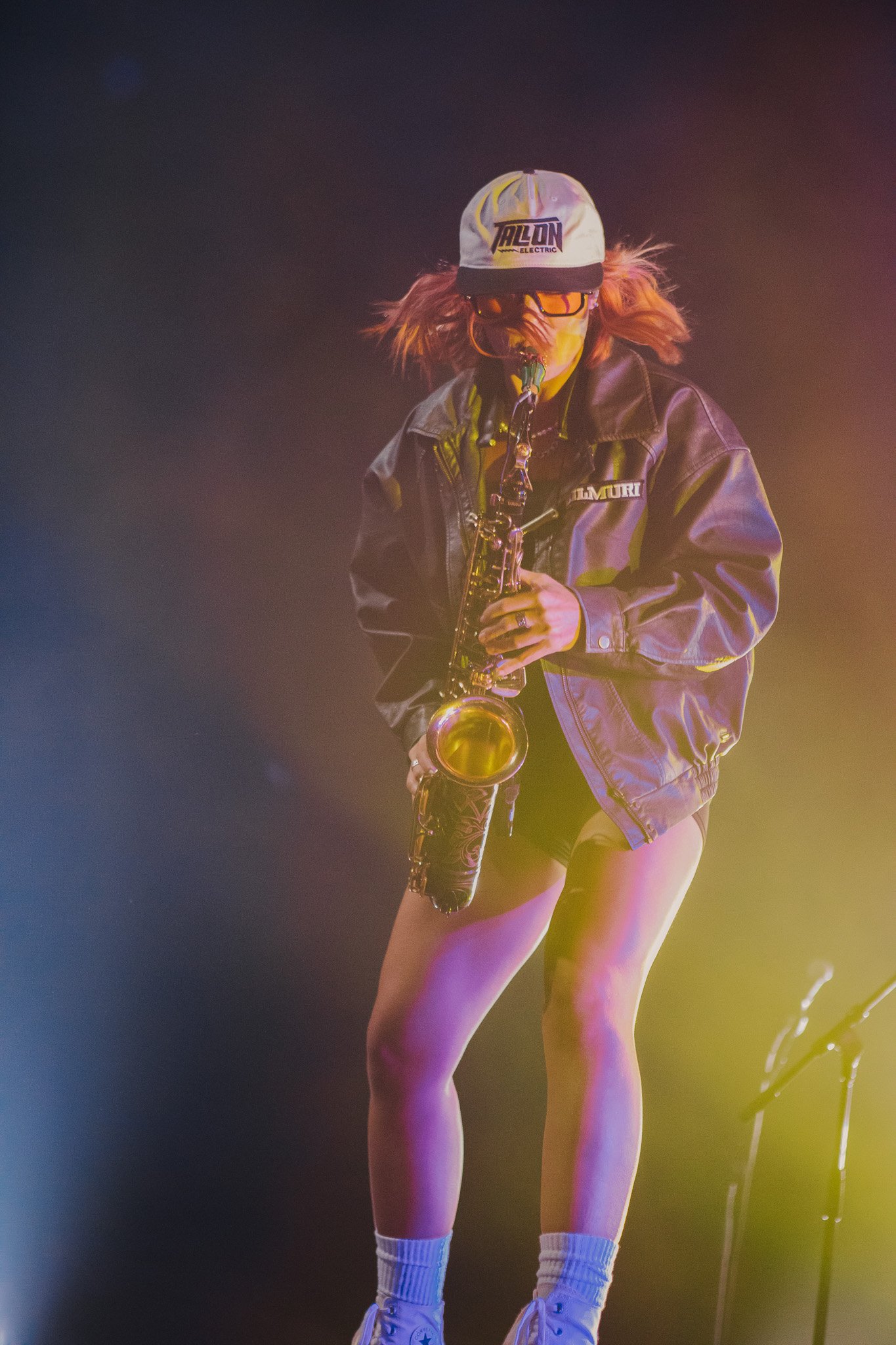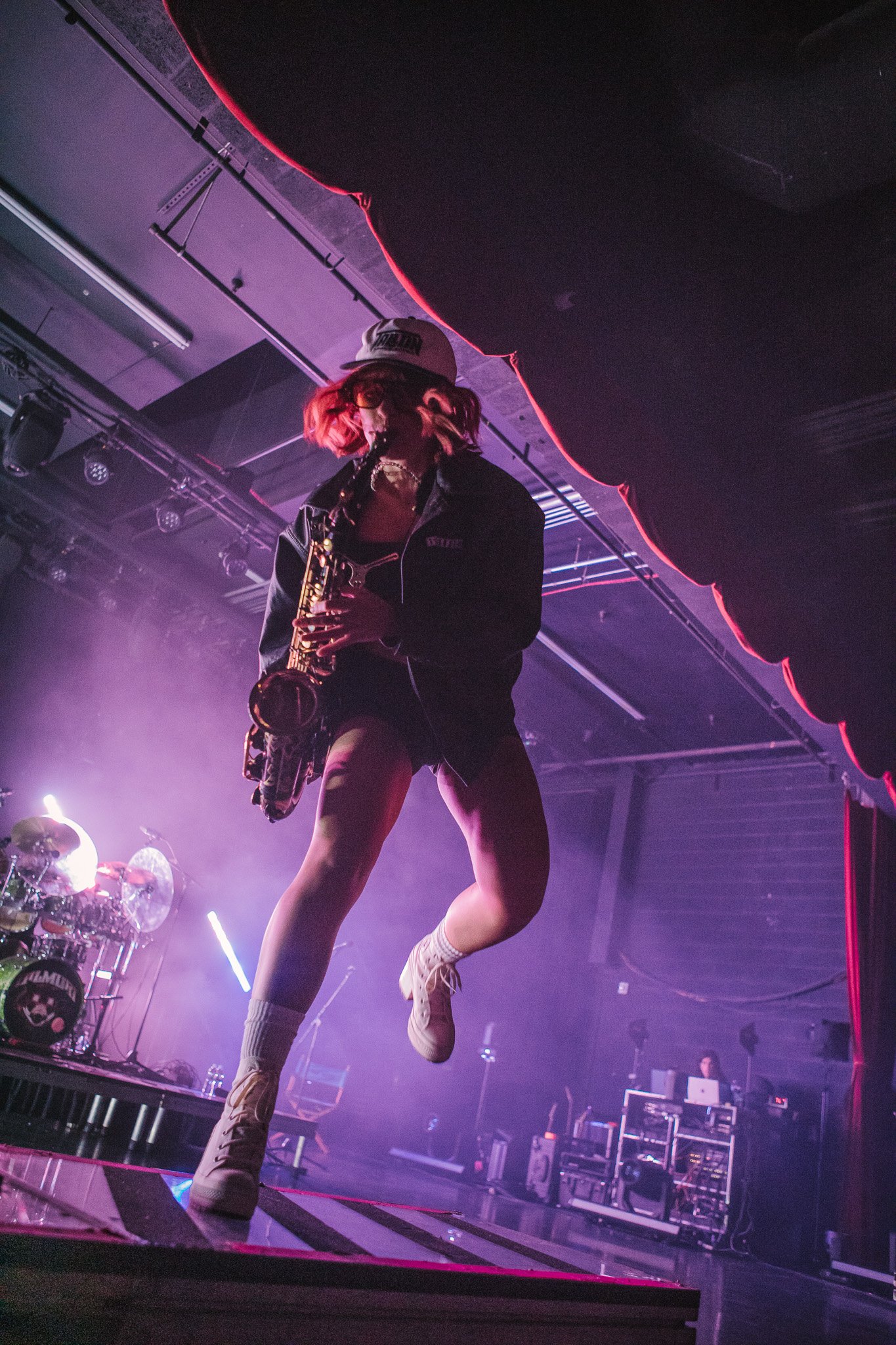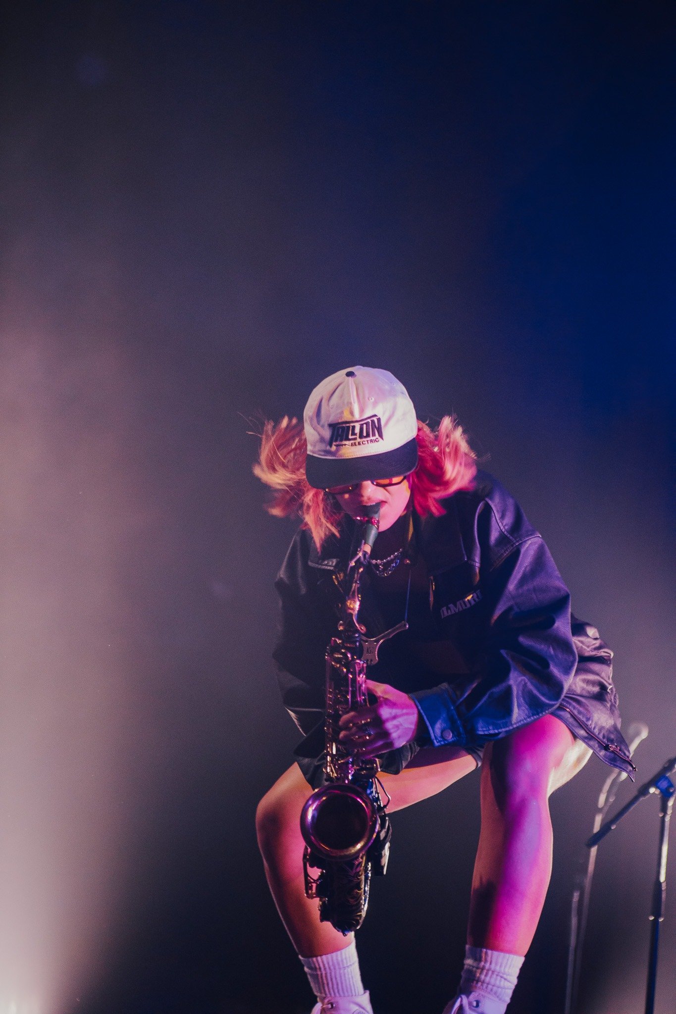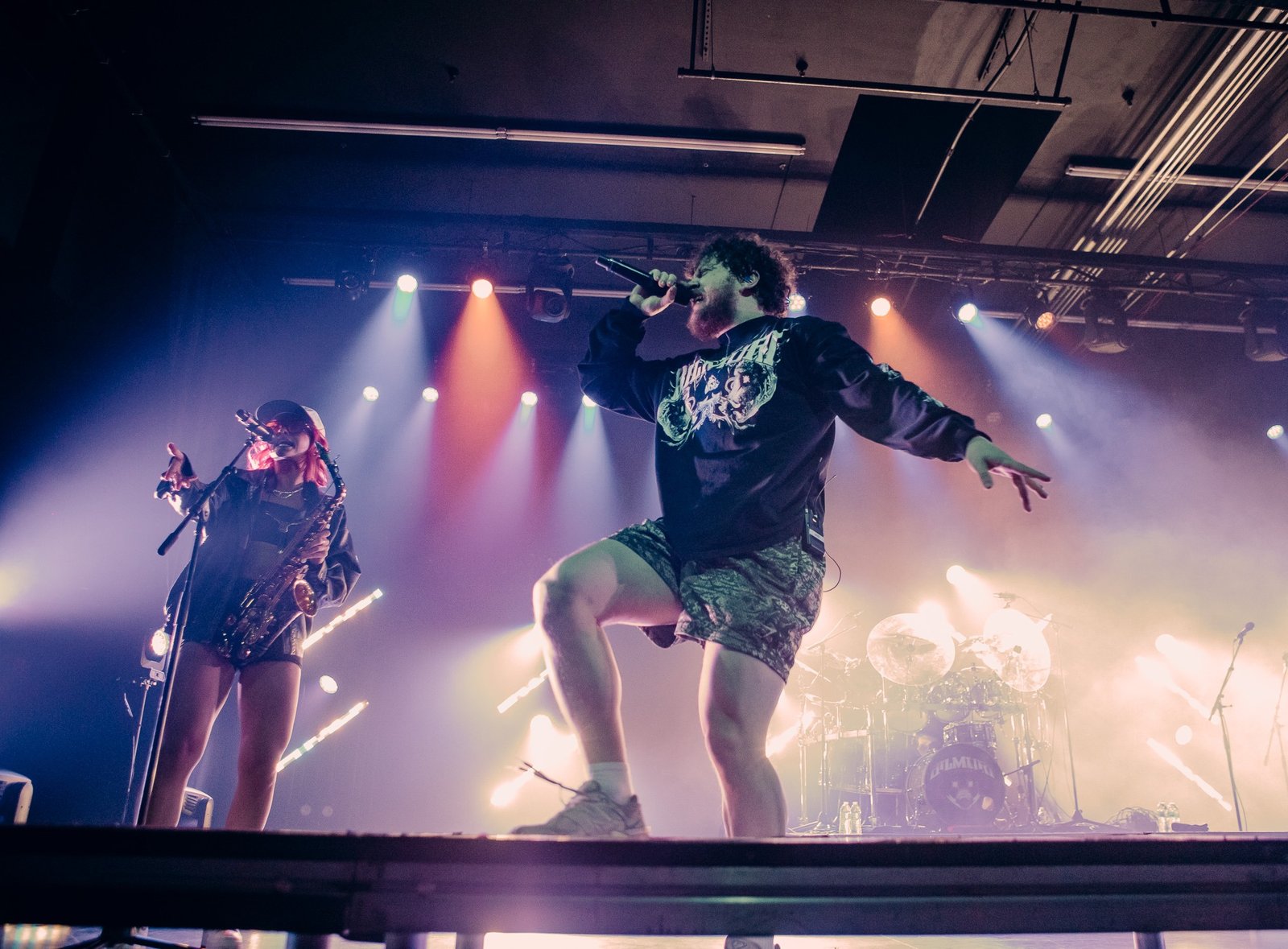 The room was sweaty and buzzing when Bilmuri finally took the stage in a wash of fog and blue lights. The crowd went wild to “EMPTYHANDED” and “ALL GAS” as the song names got progressively more unhinged (“ABSOLUTELYCRANKINMYMF’INHOG”, anyone?). It took a few songs but the crowdsurfing eventually ramped up and bodies started flying over the barricade in time with the band’s saxophone solos.