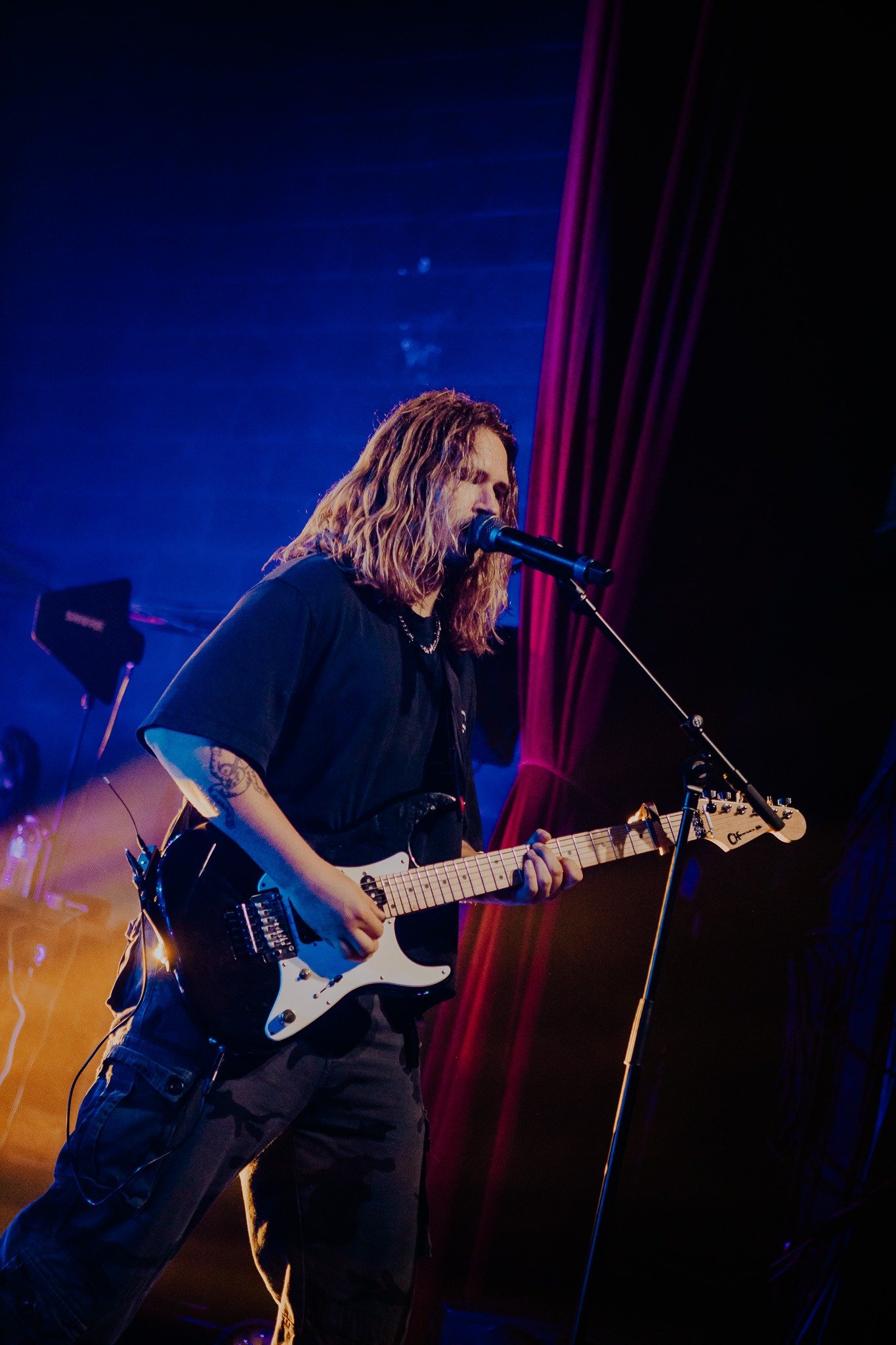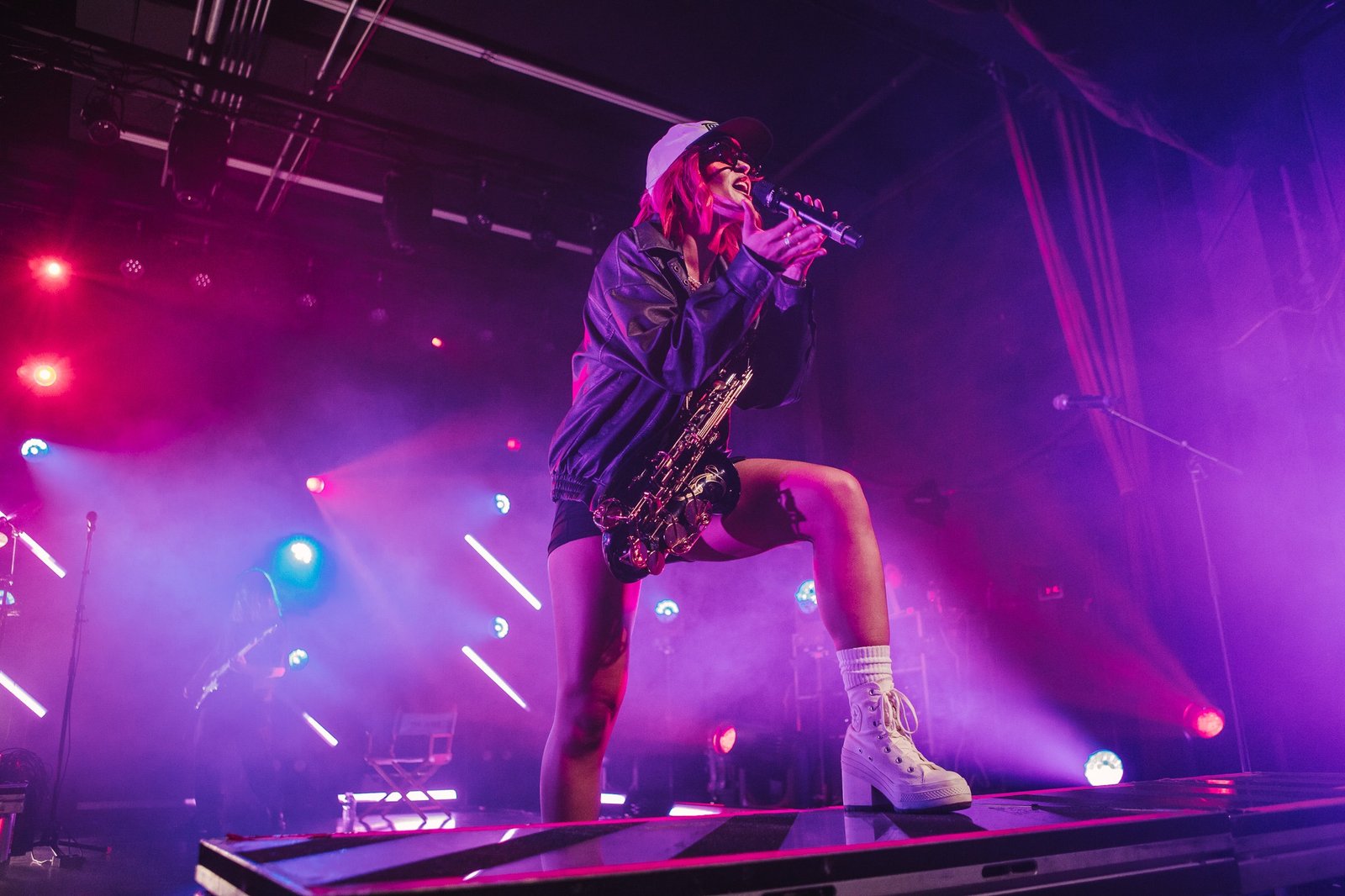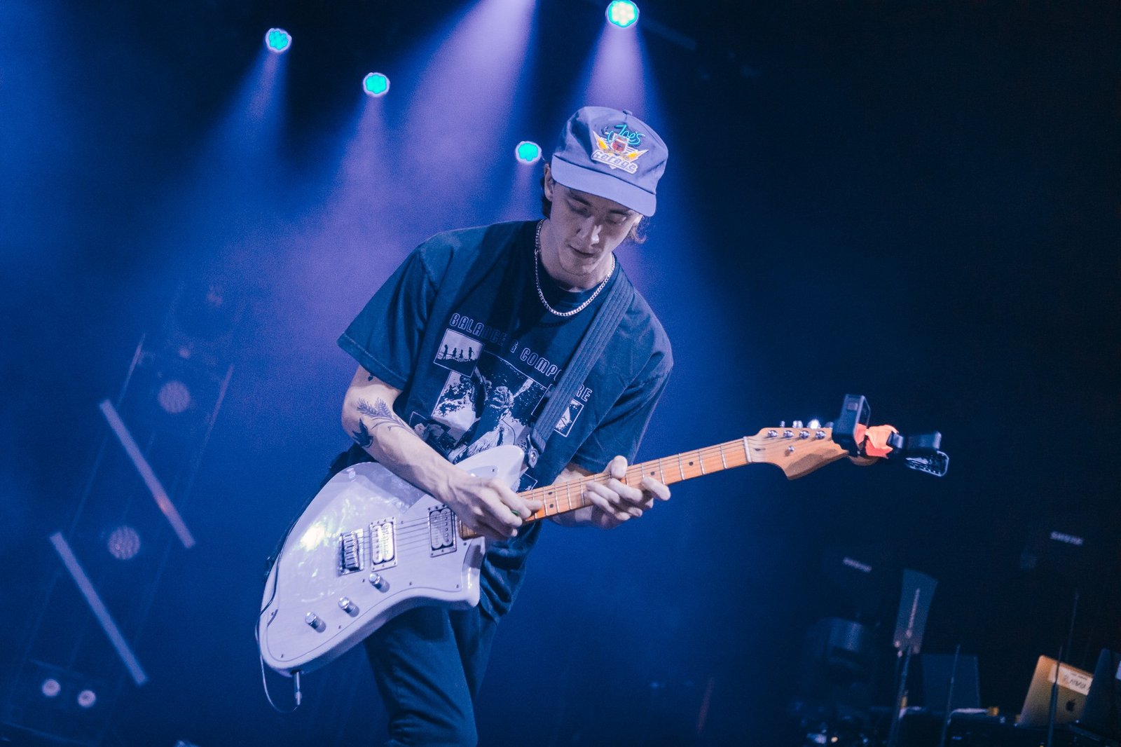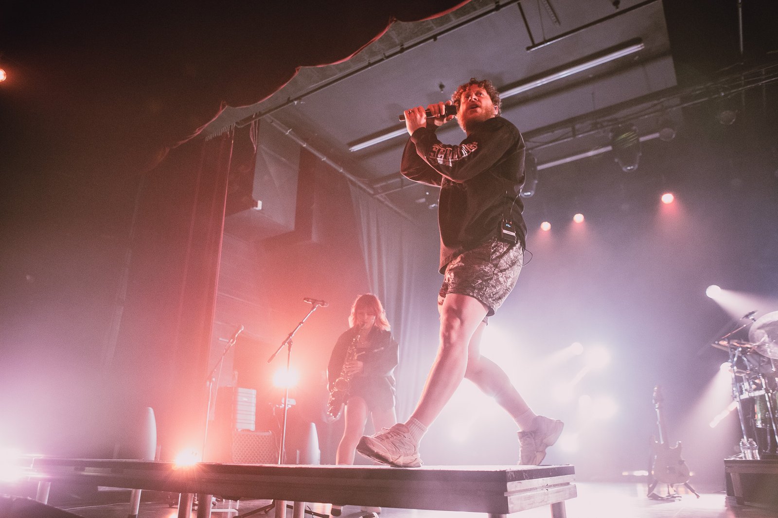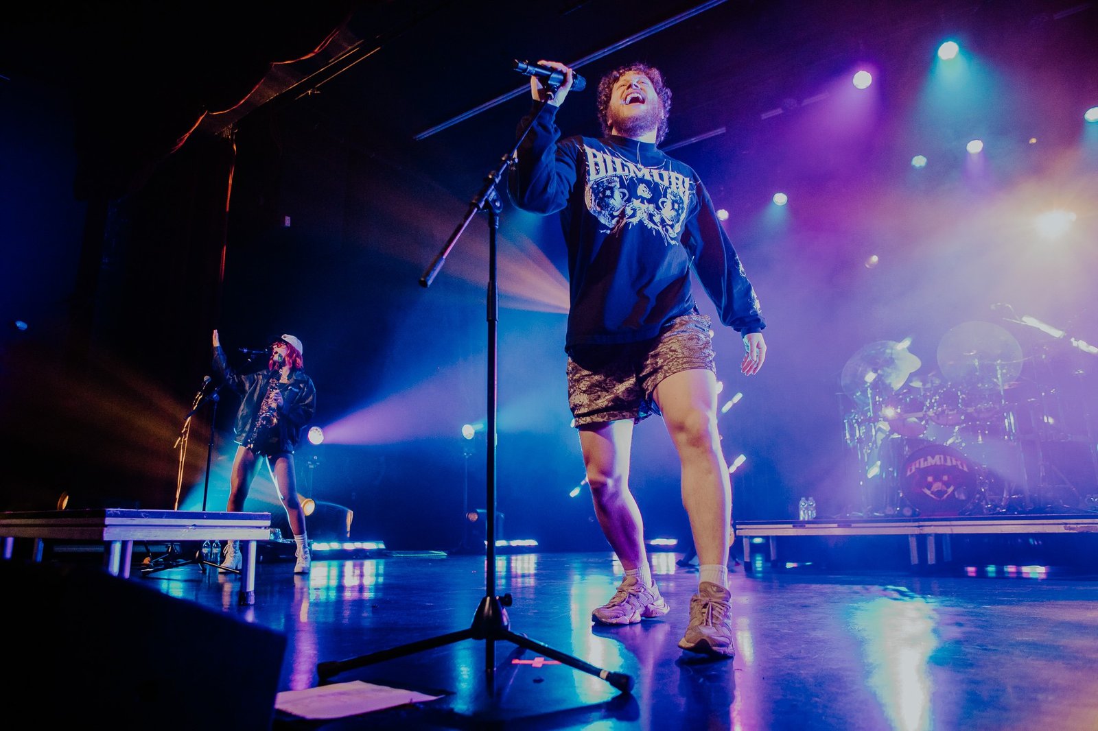 The room was sweaty and buzzing when Bilmuri finally took the stage in a wash of fog and blue lights. The crowd went wild to “EMPTYHANDED” and “ALL GAS” as the song names got progressively more unhinged (“ABSOLUTELYCRANKINMYMF’INHOG”, anyone?). It took a few songs but the crowdsurfing eventually ramped up and bodies started flying over the barricade in time with the band’s saxophone solos.