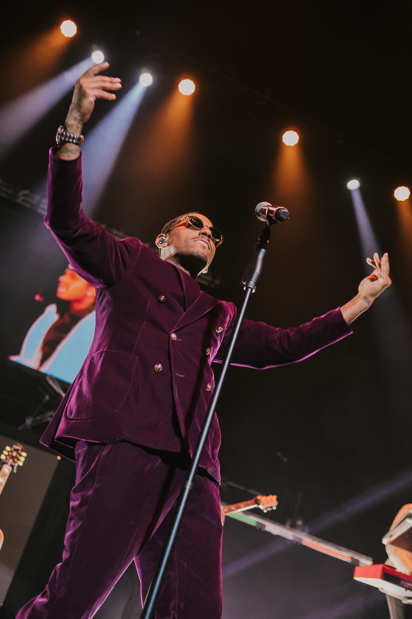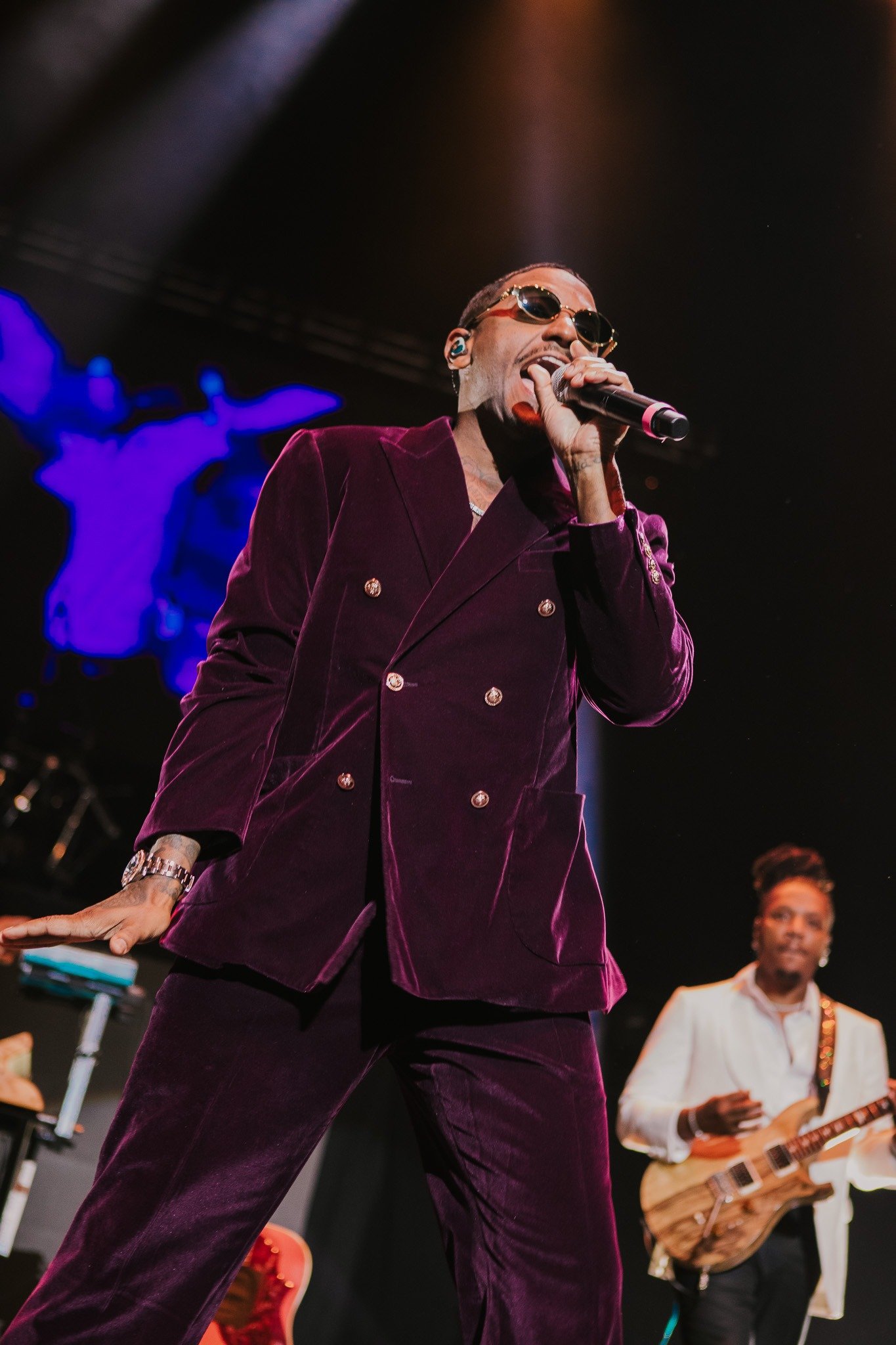 In case you haven’t been paying attention, we’re in the middle of the Lloyd renaissance. With over 20 years in the game and five albums to choose from, Lloyd began his set in the crowd, handing out dazzling smiles and high fives to everyone showing him love. As he made his way onstage, the lights flashed on his accessories and lit up his plush plum suit and the performance began in earnest. He showed off his smooth moves during “You” while the band held it down for “Player’s Prayer” and “Tru”. Lloyd even dropped in his chorus from Young Money’s smash hit “Bedrock” before giving the people exactly what they wanted- “Get It Shawty” and the recently viral “Lay It Down”. His performance was musical excellence from start to finish with his dance moves, guitar skills and heartfelt words of gratitude lighting up the room almost as brightly as his smile.