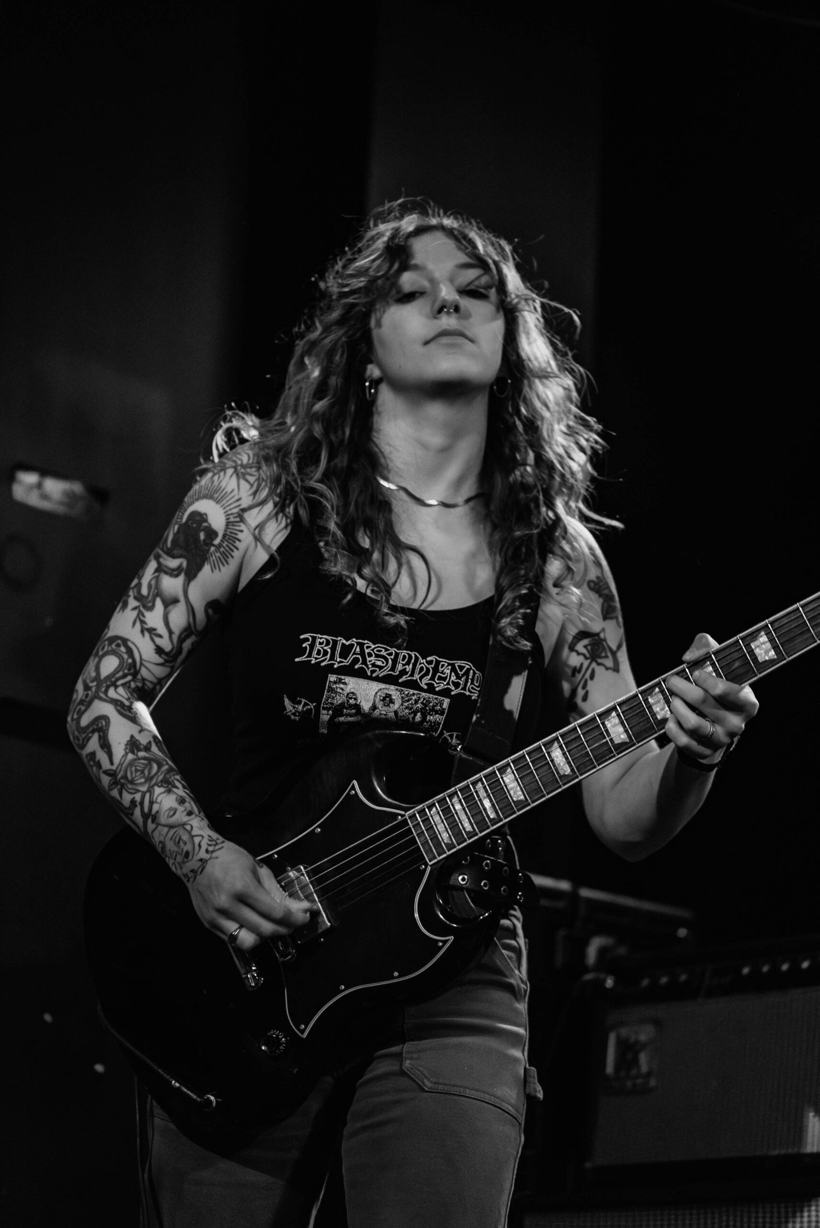 Finally it was time for the headliner, and Blackwater Holylight delivered a show worth the billing. They opened with two tracks off their January release before mixing in the rest of their catalogue. The doom/shoegaze-esque group seemed to find a deeper and deeper groove as they moved through their setlist, especially when they performed “Heavy, Why?”. Vocalist Sunny Faris began her night playing guitar before swapping with Mikayla Mayhew, who started the evening on bass while Katt Garrigan on keys and Eliese Dorsay on drums kept things steady. Another highlight came in their penultimate song, a heavy performance of “Bodies”.