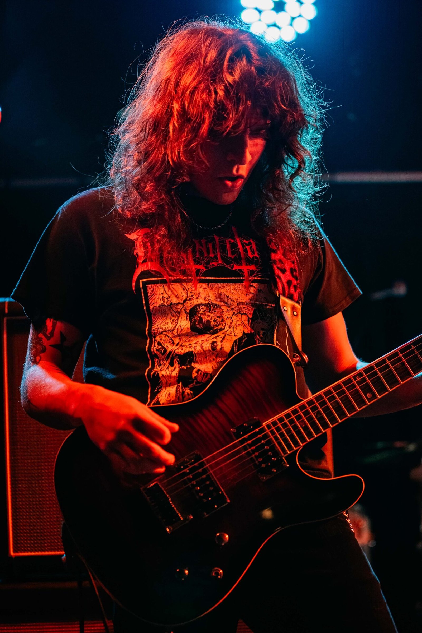 Glassing took the stage next and the Austin-based outfit amped things up from the jump until vocalist Dustin Coffman’s microphone died out, causing a slight delay. They toyed with the idea of trudging along without Coffman’s voice, but the crew sorted the situation and Glassing got right back to ripping through their catalogue, including an energetic performance of “Dire” from their 2024 release From The Other Side Of The Mirror. Cory Brim shredded the melodies on his guitar while Scott Osment kept the band firing on all cylinders.
