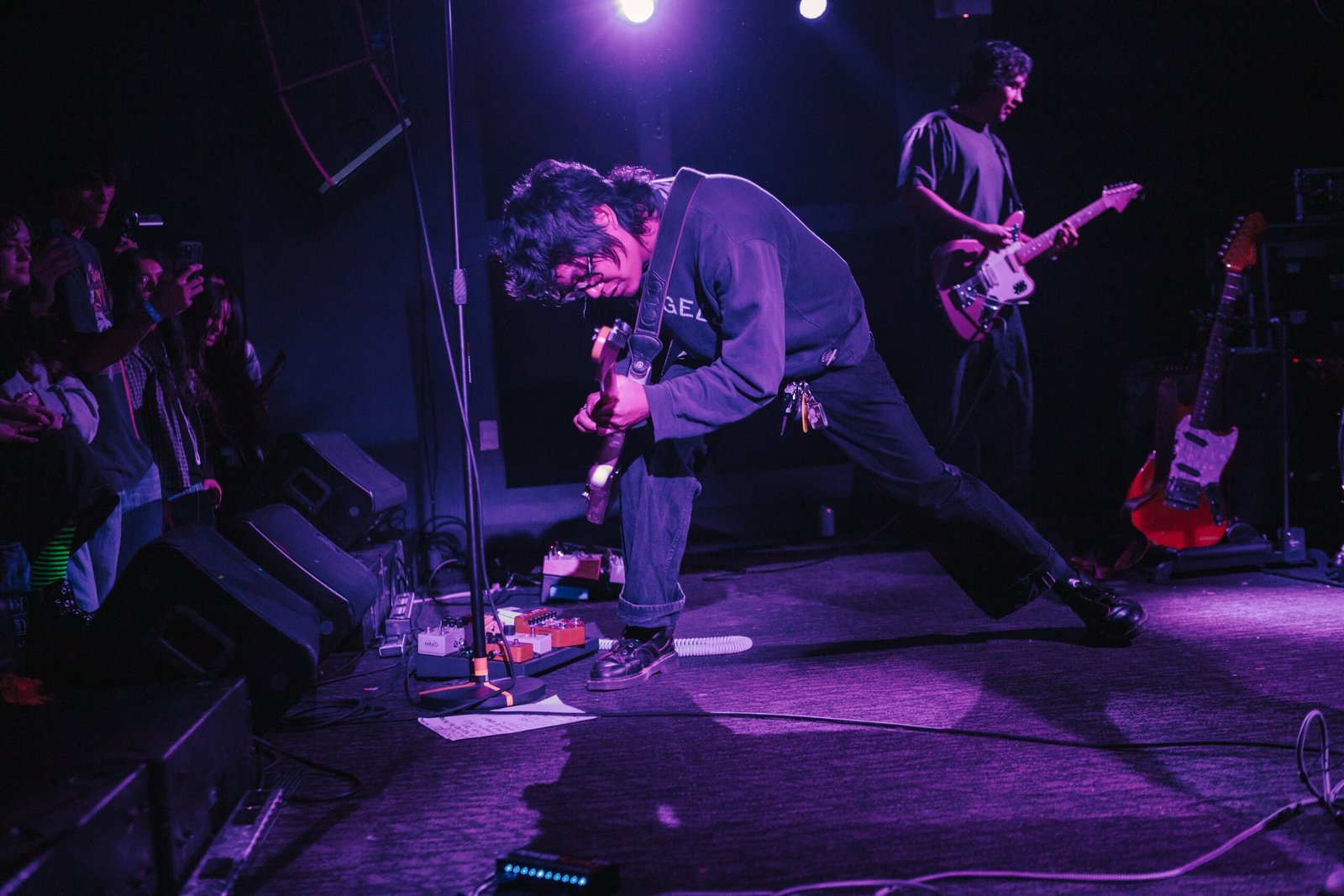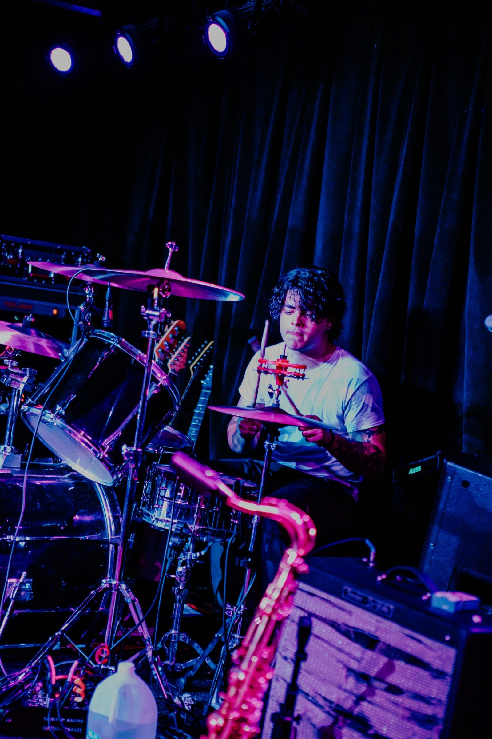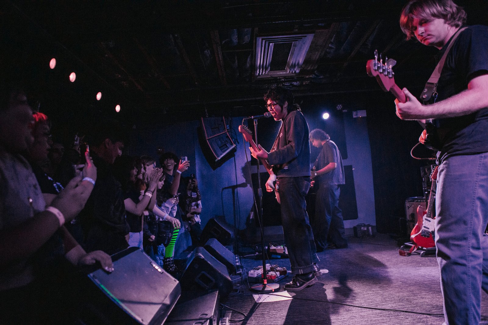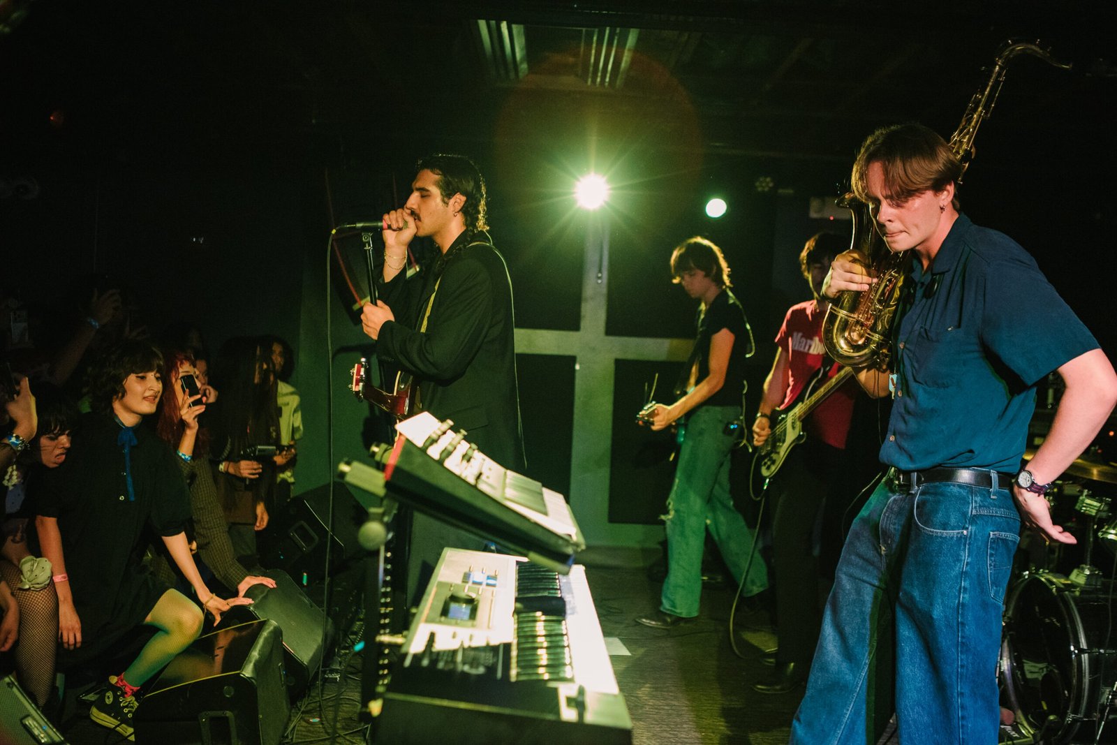 Israel’s Arcade had barely taken the stage when the crowd started moving, shoving to the front while waves of fans crashed up on the stage. The California group came armed with a saxophone and an indomitable magnetism that radiated from frontman Izzy Pinedo. The band was wired in and performed with a practiced ease that nearly went unnoticed underneath the comfortable chaos in their sound. Anyone in the audience not already familiar with the band was visibly onboard by the end of the set and thoroughly warmed up for the tour’s headlining act.