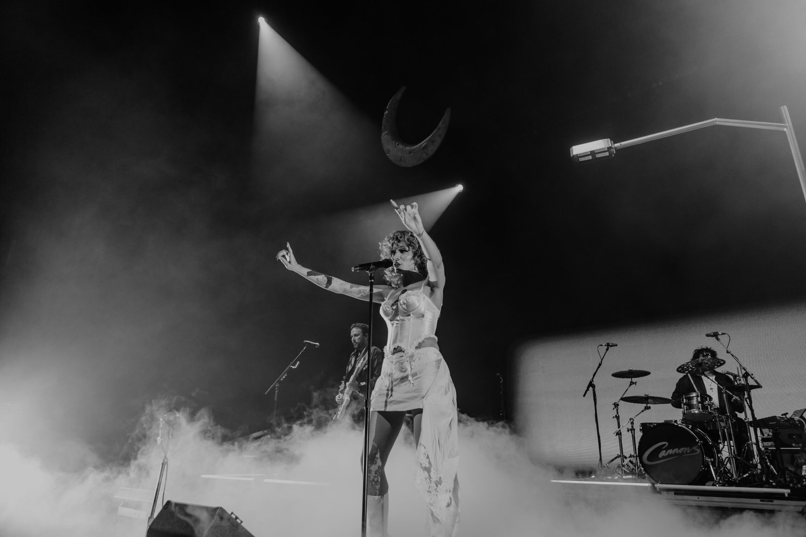 Indie electro-pop trio Cannons has already dominated radio charts with songs like “Fire For You” and “Bad Dream,” but instead of coasting, they’re staying busy — they’ve reinvented how they work, write, record, and even sound over the past few years. The result? The highly anticipated album, Everything Glows, that they released last Friday. On the Afterglow Tour, which they brought to the Arizona Financial Theatre on Tuesday night, they were as entrancing as ever, creating an otherworldly atmosphere on stage with billowing smoke and a shining crescent moon overhead. Vocalist Michelle Joy’s ethereal voice balanced with sparkly synths and hypnotic rhythms, enrapturing the crowd, and we basked in the glow.