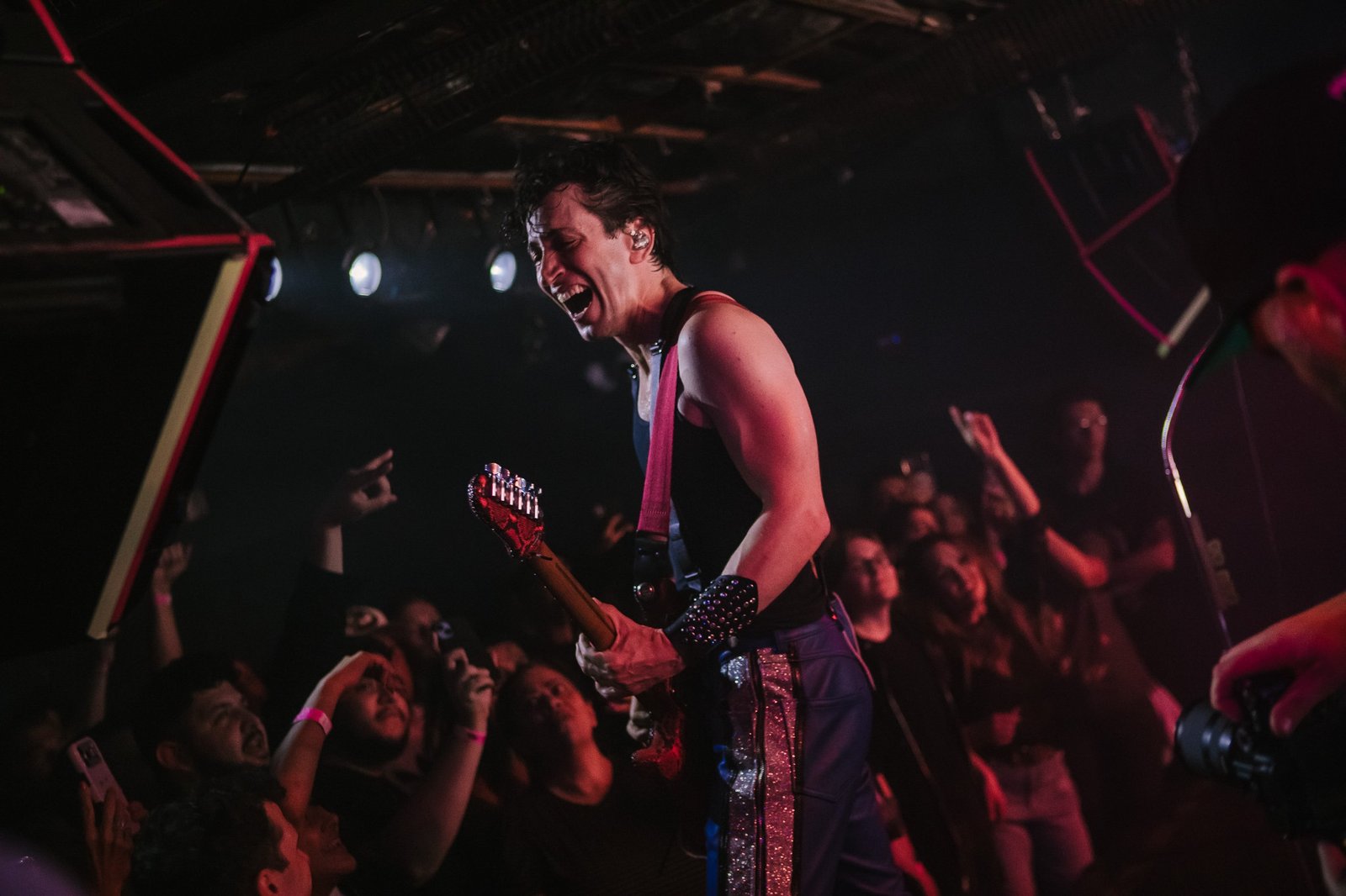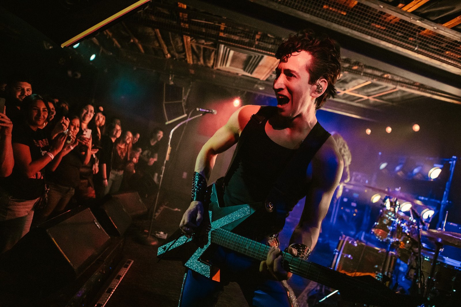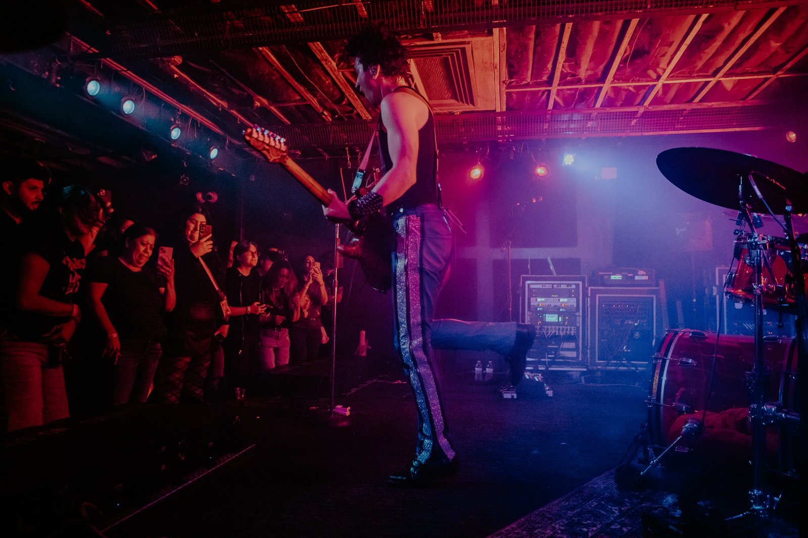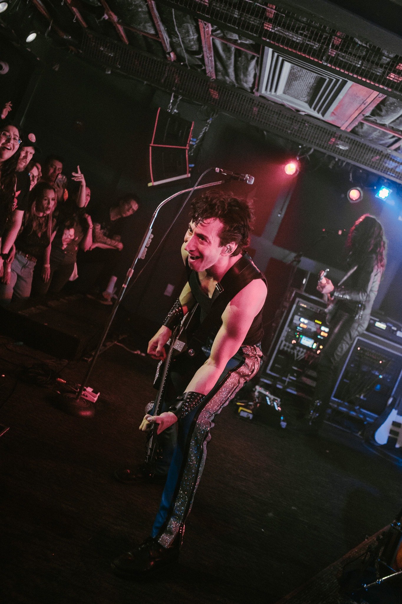 Rebel’s stage transformed under Des Rocs’ feet as he stomped back and forth in front of his adoring audience, encouraging them to sing loudly and dance with abandon as the night went on. He’s an undeniably charismatic performer with the musical chops to back it up- more than one shredding guitar solo had the front row mesmerized throughout the show. Fan favorites like “I Am the Lightning” and “Used to the Darkness” drew huge cheers and enthusiastic singing from a crowd where many attendees were celebrating many years and many shows with Des Rocs.