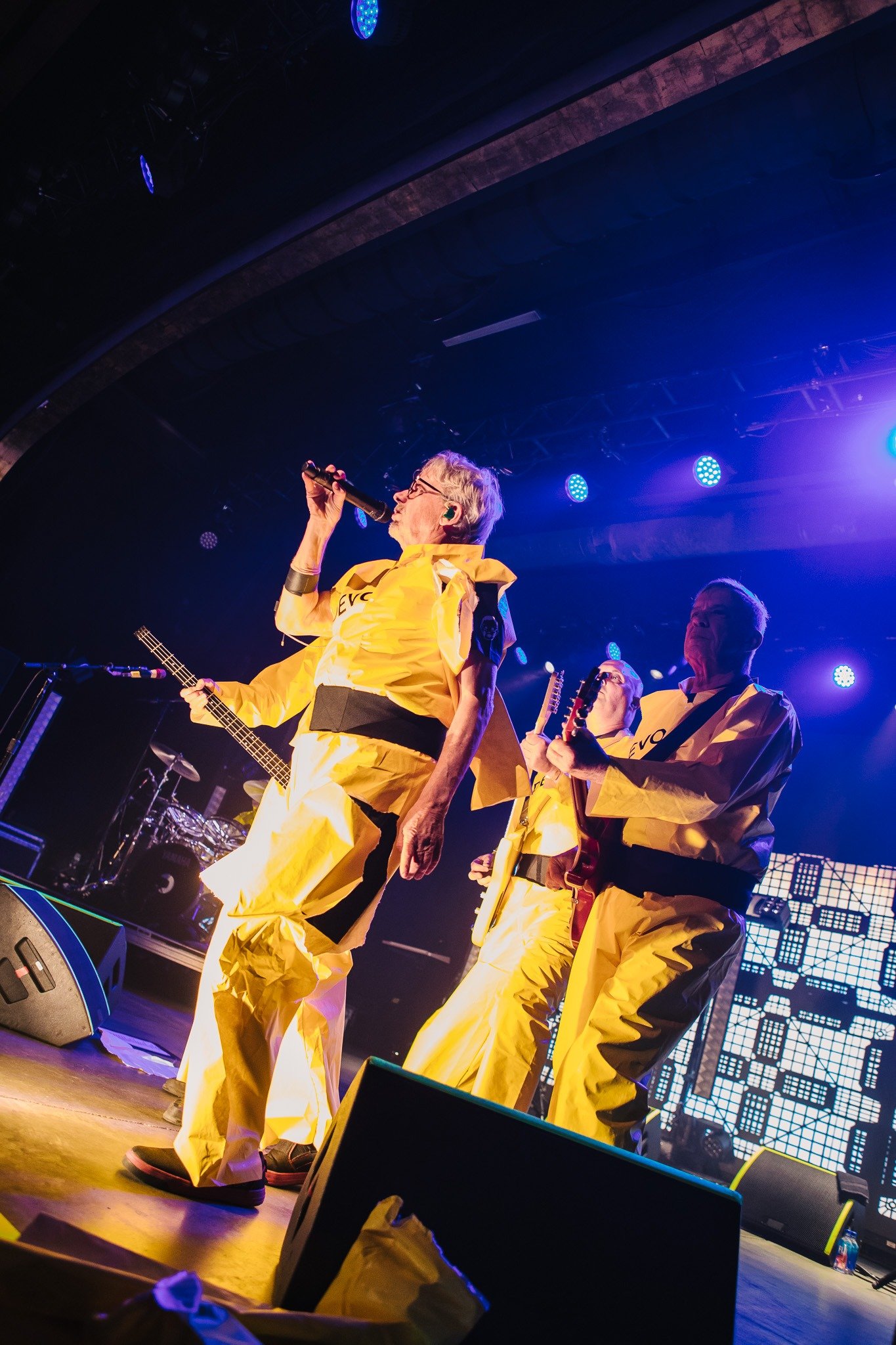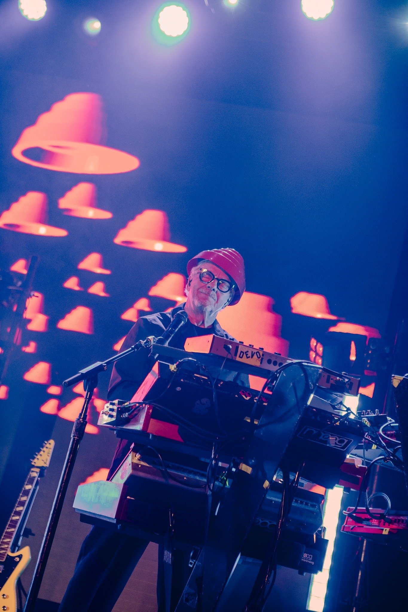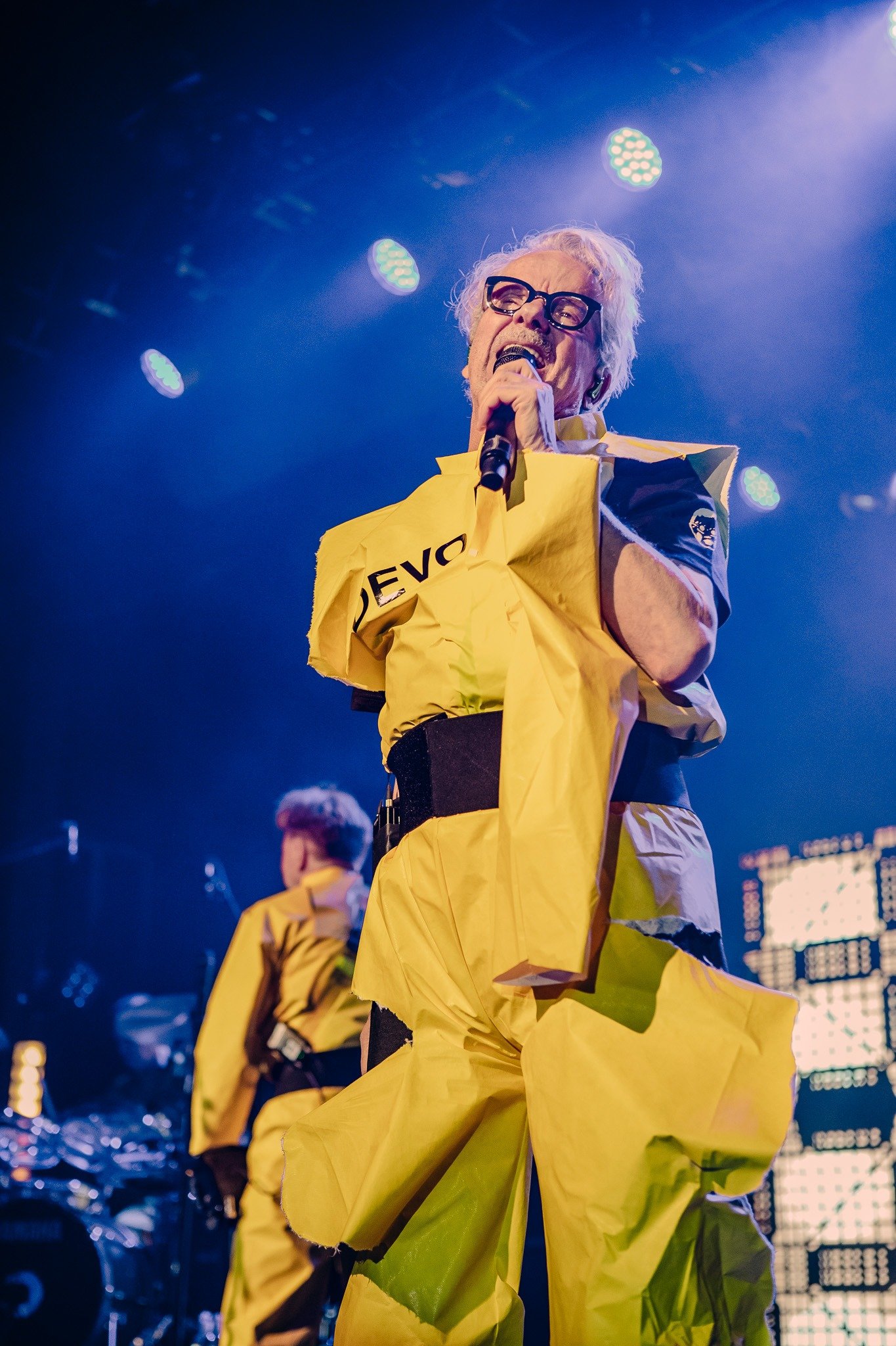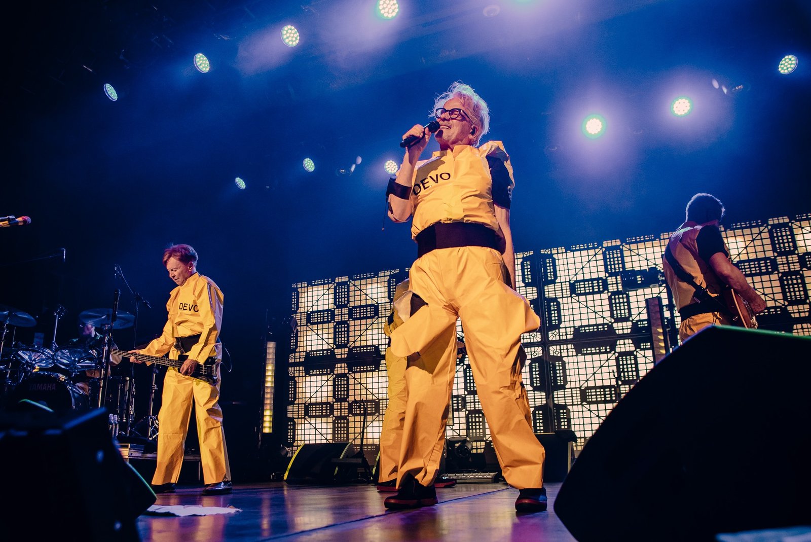 Devo smoothly reappeared in their signature energy domes for “Whip It” and “Planet Earth”, all while tossing domes into the audience and framing their performance with a kaleidoscope of ever-changing graphics on the massive LED screen behind them. Standing in the midst of an enraptured roomful of fans, it was impossible to remain seated and Devo certainly gave the people a setlist worthy of movement from start to finish. From their plethora of costume changes- including those unmistakable yellow suits- to the perfectly curated setlist, fans emerged from the venue already buzzing with anticipation for Monday evening’s special show.
