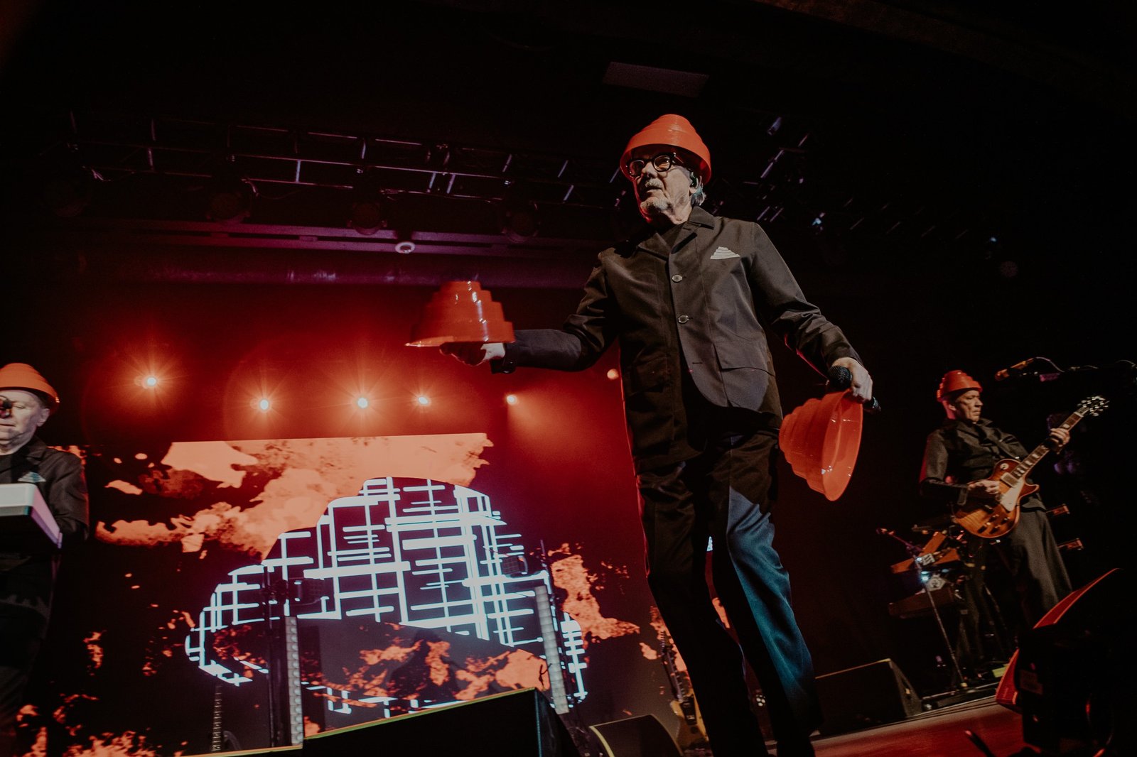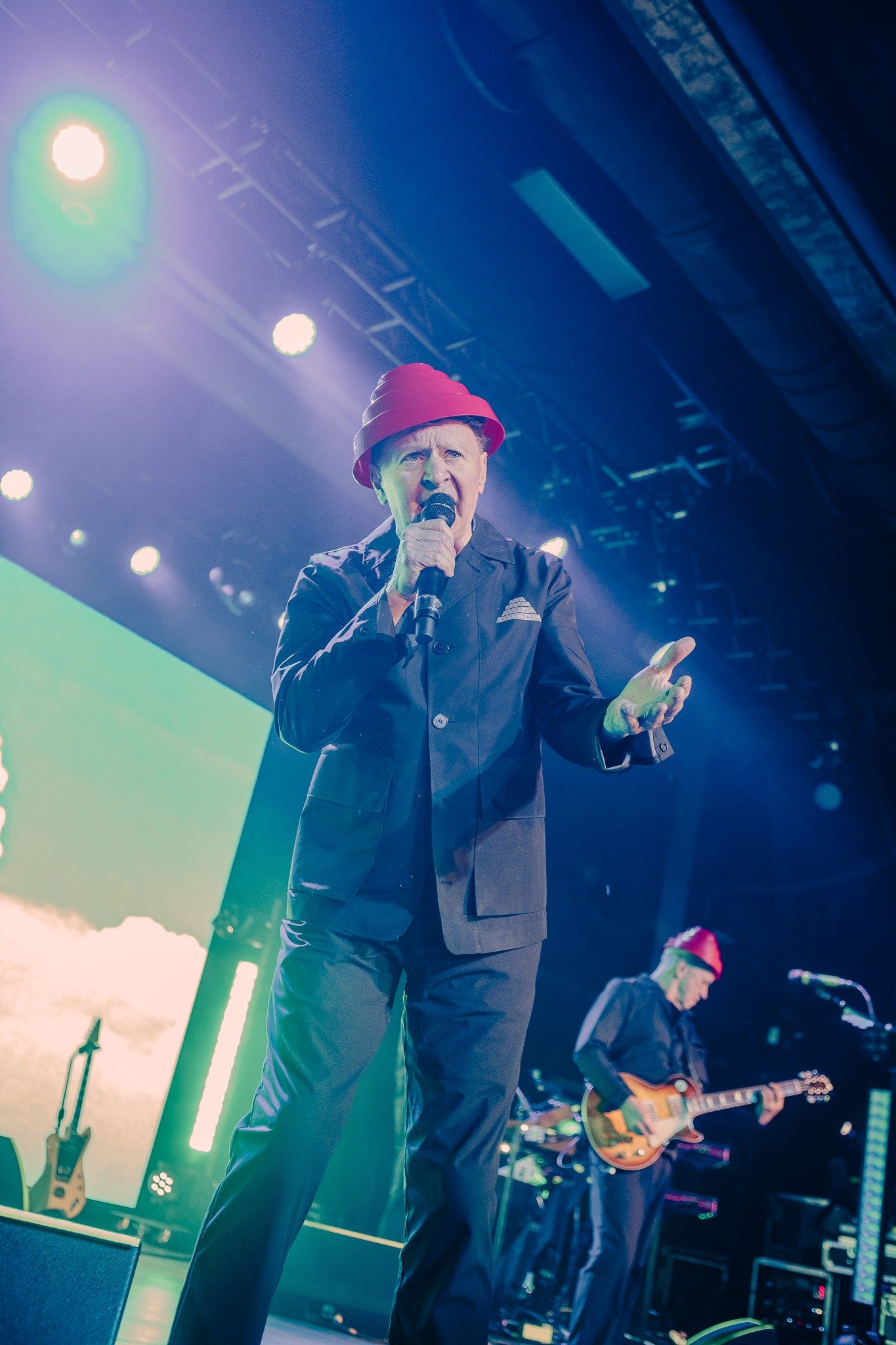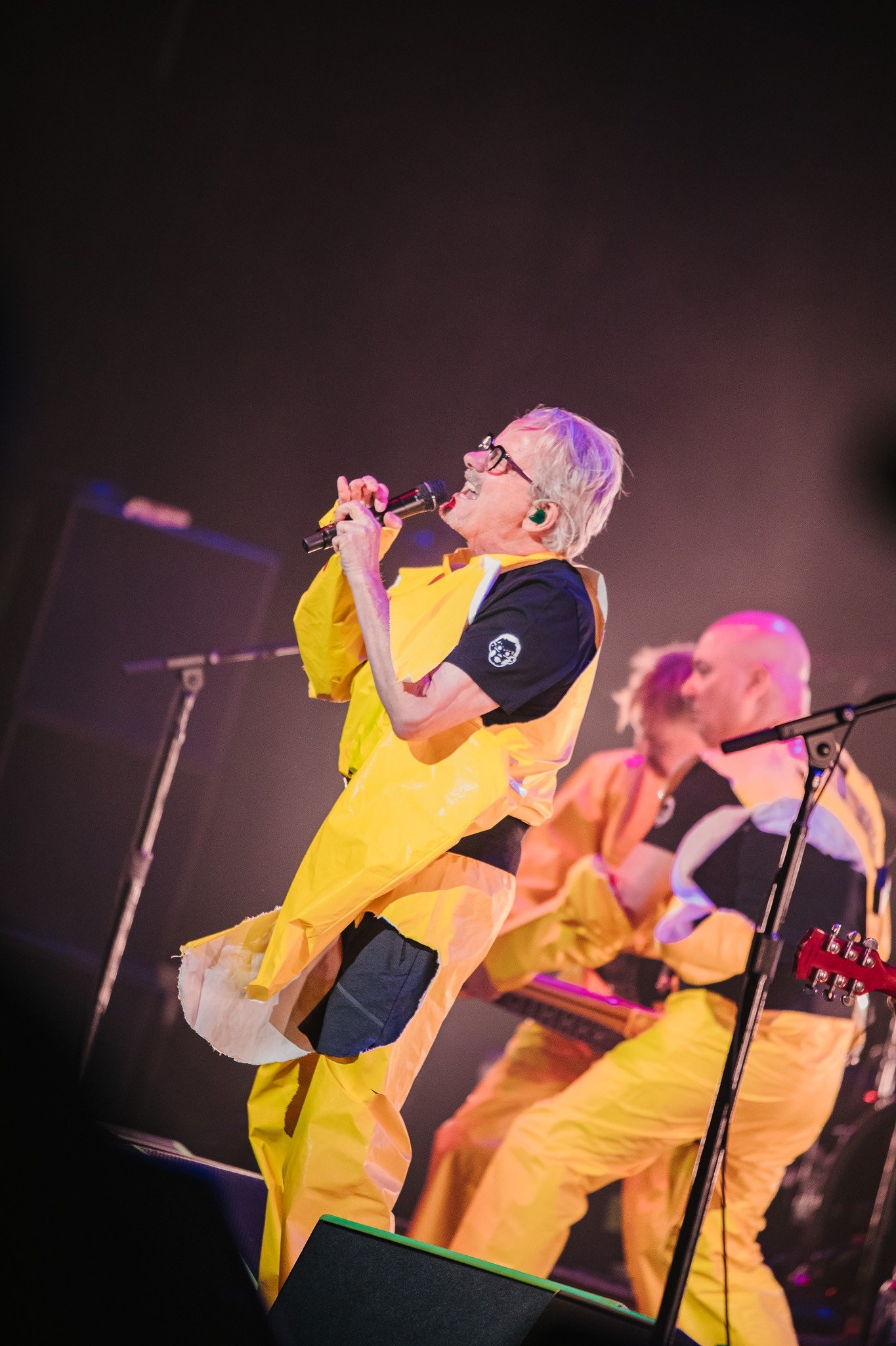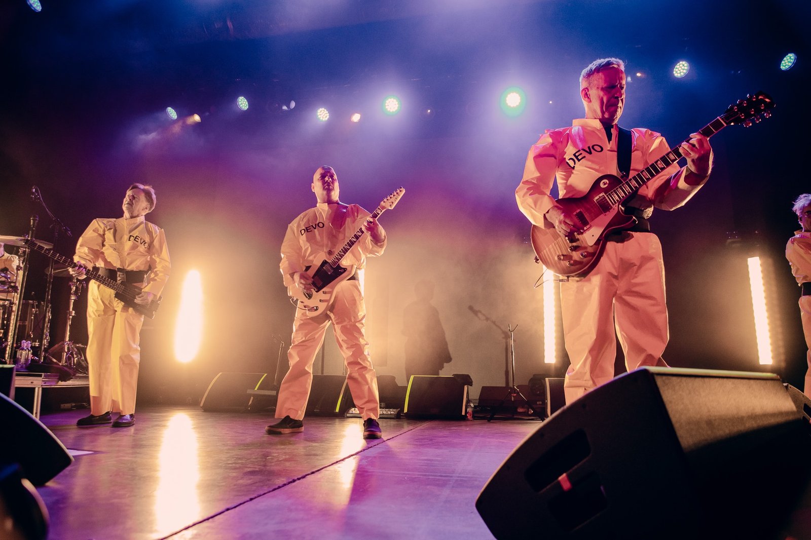 Devo smoothly reappeared in their signature energy domes for “Whip It” and “Planet Earth”, all while tossing domes into the audience and framing their performance with a kaleidoscope of ever-changing graphics on the massive LED screen behind them. Standing in the midst of an enraptured roomful of fans, it was impossible to remain seated and Devo certainly gave the people a setlist worthy of movement from start to finish. From their plethora of costume changes- including those unmistakable yellow suits- to the perfectly curated setlist, fans emerged from the venue already buzzing with anticipation for Monday evening’s special show.