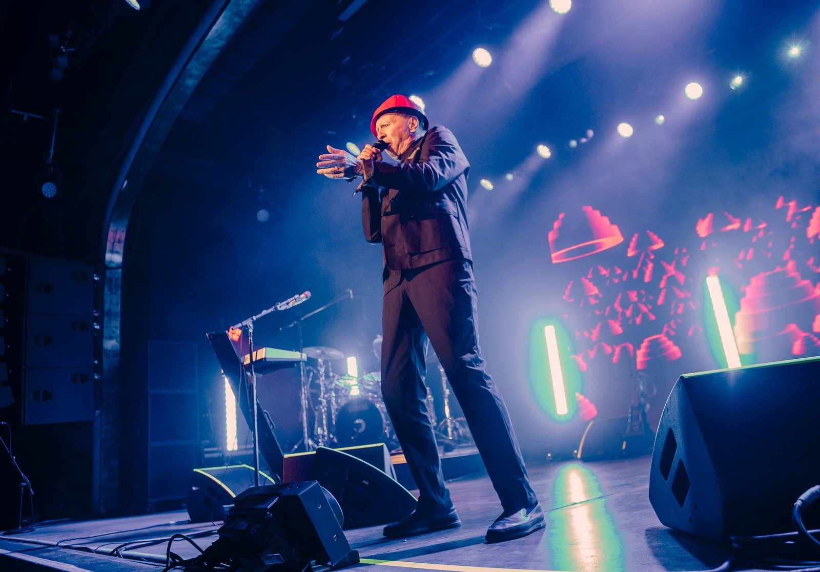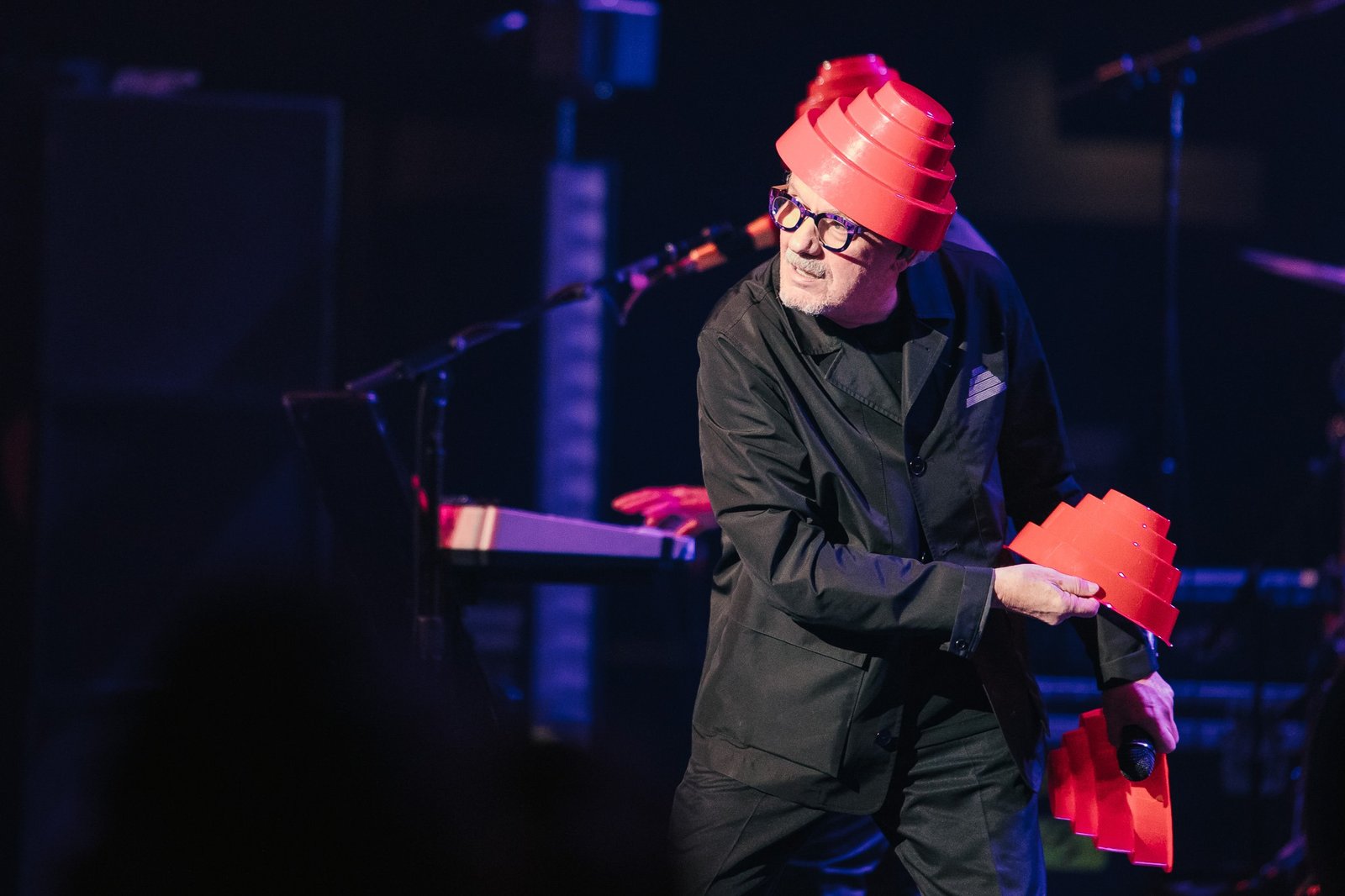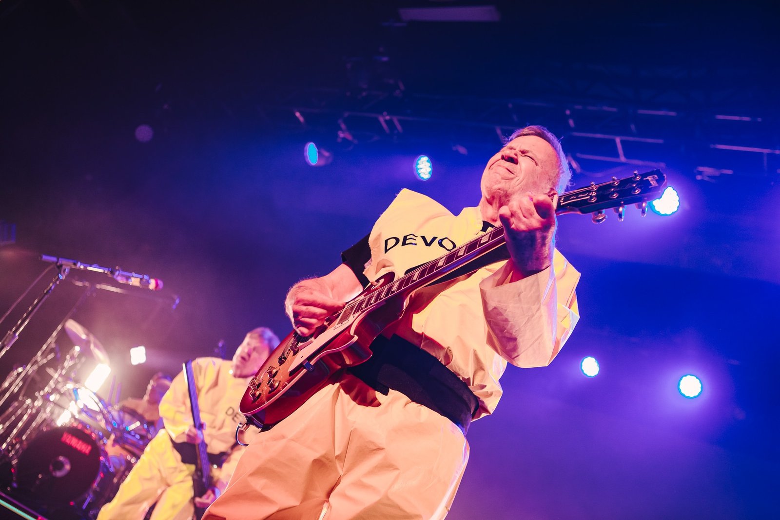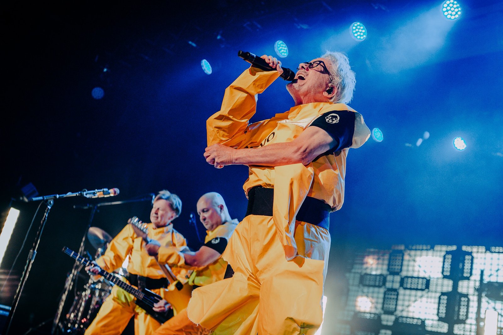 Devo smoothly reappeared in their signature energy domes for “Whip It” and “Planet Earth”, all while tossing domes into the audience and framing their performance with a kaleidoscope of ever-changing graphics on the massive LED screen behind them. Standing in the midst of an enraptured roomful of fans, it was impossible to remain seated and Devo certainly gave the people a setlist worthy of movement from start to finish. From their plethora of costume changes- including those unmistakable yellow suits- to the perfectly curated setlist, fans emerged from the venue already buzzing with anticipation for Monday evening’s special show.