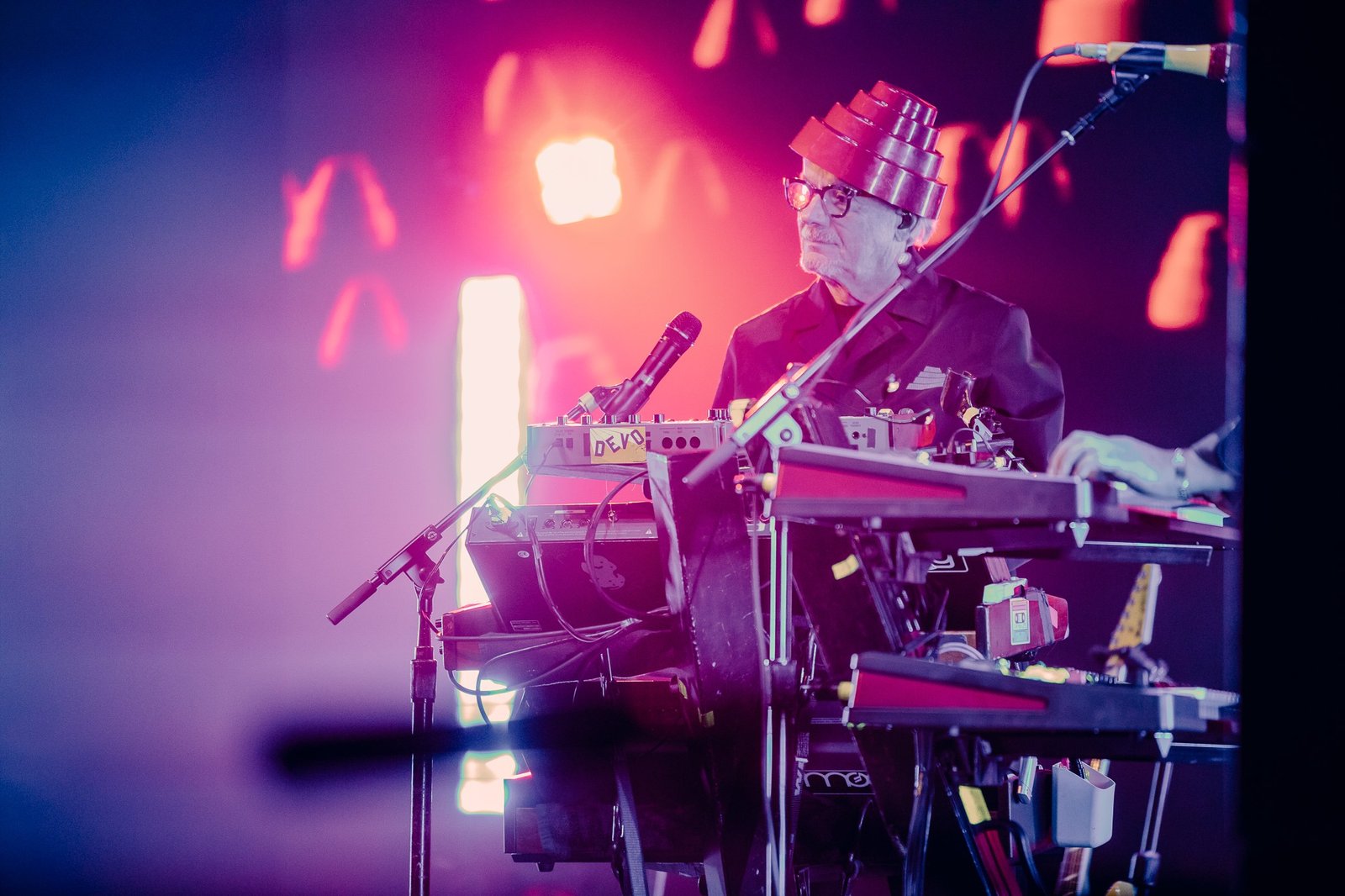 Sunday night brought the superfans to Arizona Financial Theatre, dressed in their finest Devo-inspired gear and gearing up for a lengthy performance from the group. Without an opener, the night began early as everyone got up on their feet for “Don’t Shoot (I’m a Man)” and “Peek-A-Boo!” to kick things off. The band fully embodied the boundless energy and sharp delivery that shot them to stardom over 50 years ago and plenty of day one fans could be seen reliving those glory days in the crowd.